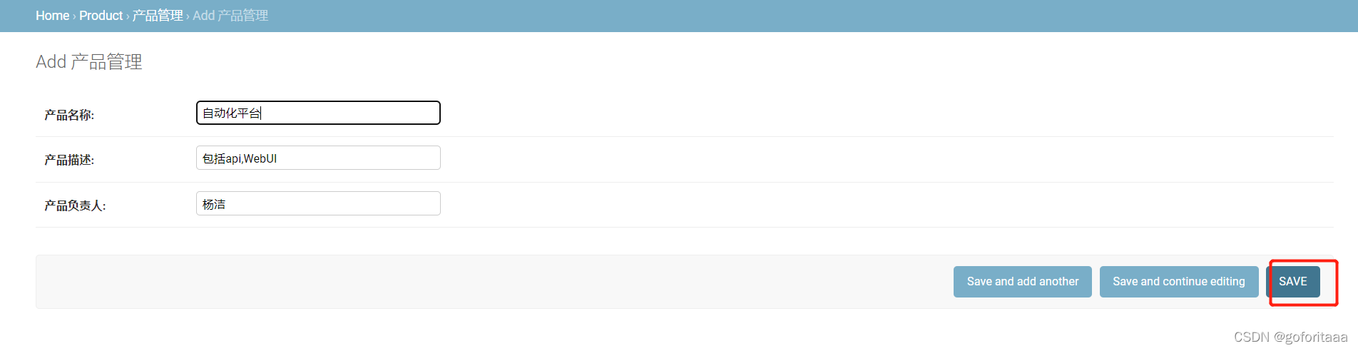 步骤六:登录页面,添加产品数据,然后点击产品管理