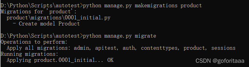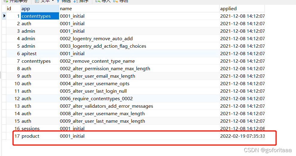 则会在django_migrations表中,多一条product数据,则才会迁移成功
